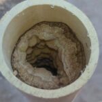 This kind of clog can occur with any type of drain pipe. I also has to to with the amount if minerals/hard water in the water and what types. This also effects your water heater. Its a powdery layer that can thicken over time.